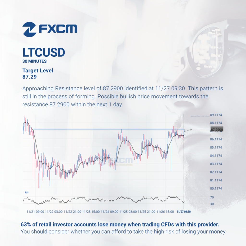 Approaching Resistance level of 87.2900 identified at 11/27 09:30. This pattern is still in the process of forming. Possible bullish price movement towards the resistance 87.2900 within the next 1 day. Past performance is not an indicator of future results. Losses can exceed deposits.