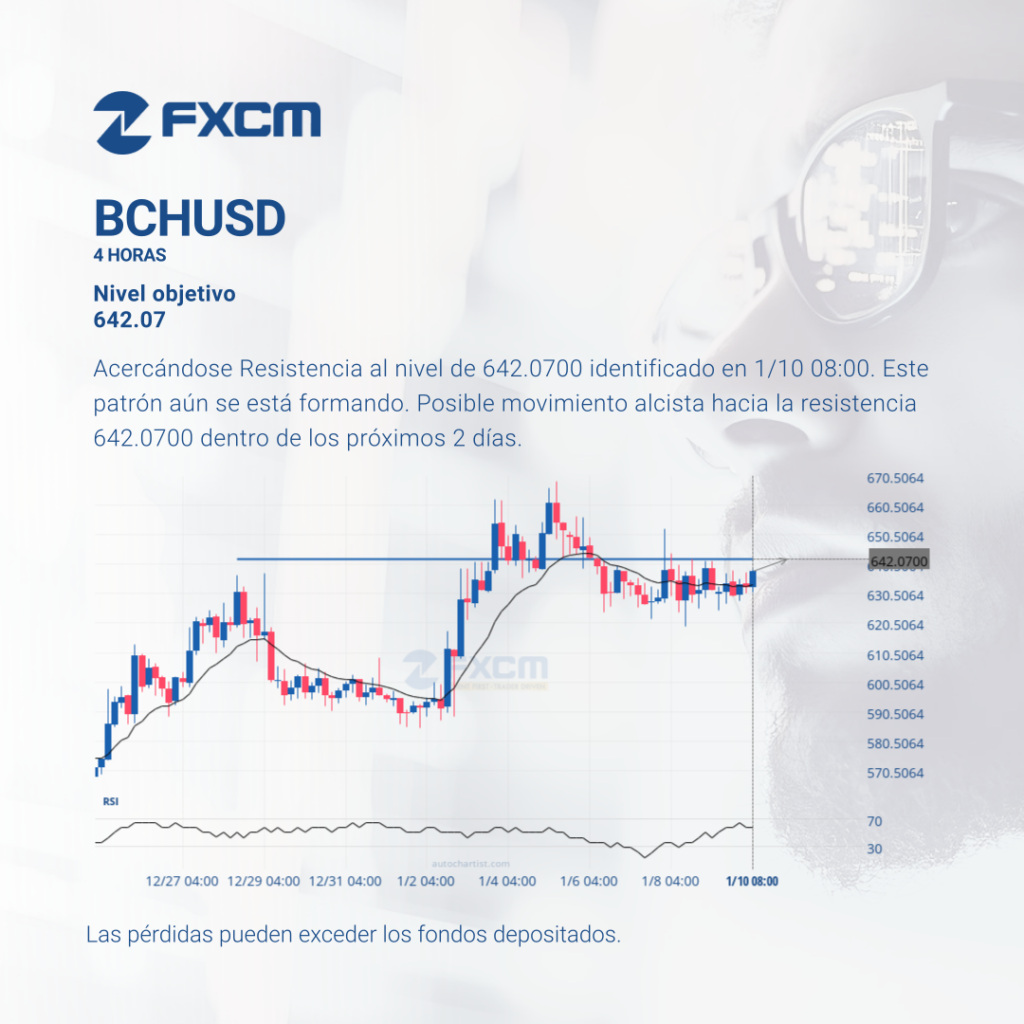 Acercándose Resistencia al nivel de 642.0700 identificado en 1/10 08:00. Este patrón aún se está formando. Posible movimiento alcista hacia la resistencia 642.0700 dentro de los próximos 2 días. Las pérdidas pueden exceder los depósitos.