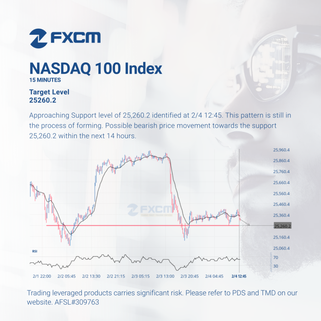 Approaching Support level of 25,260.2 identified at 2/4 12:45. This pattern is still in the process of forming. Possible bearish price movement towards the support 25,260.2 within the next 14 hours. Past performance is not an indicator of future results. Trading leveraged products carries significant risk. Please refer to PDS and TMD on our website. […]