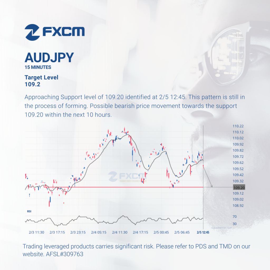 Approaching Support level of 109.20 identified at 2/5 12:45. This pattern is still in the process of forming. Possible bearish price movement towards the support 109.20 within the next 10 hours. Past performance is not an indicator of future results. Trading leveraged products carries significant risk. Please refer to PDS and TMD on our website. […]