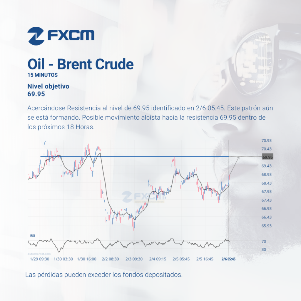 Acercándose Resistencia al nivel de 69.95 identificado en 2/6 05:45. Este patrón aún se está formando. Posible movimiento alcista hacia la resistencia 69.95 dentro de los próximos 18 Horas. El rendimiento pasado no es indicativo de resultados futuros. Las pérdidas pueden exceder los depósitos.