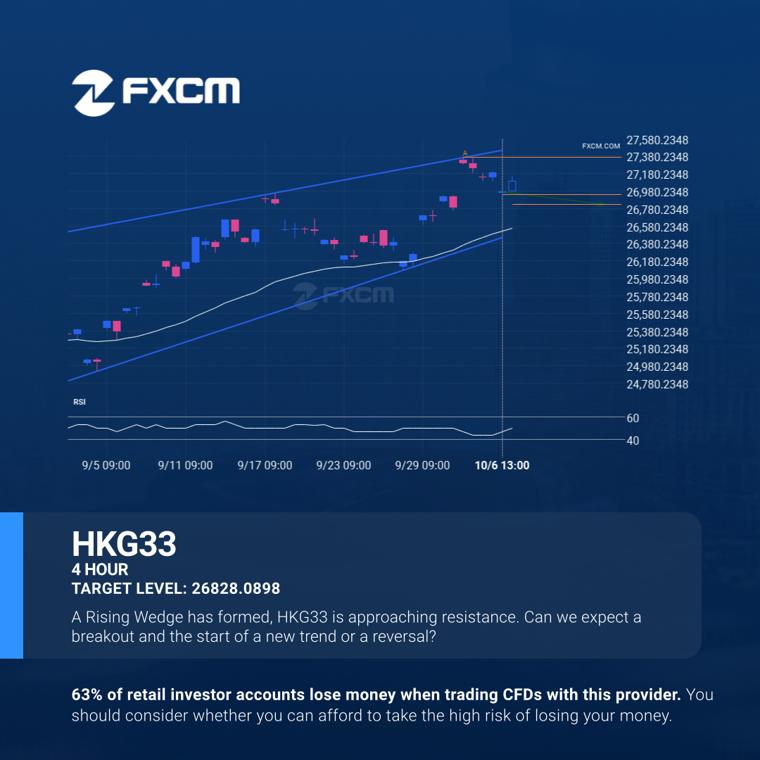The movement of HKG33 towards the support line of a Rising Wedge is yet another test of the line it reached numerous times in the past. This line test could happen in the next 2 days, but it is uncertain whether it will result in a breakout through this line, or simply rebound back to current levels.