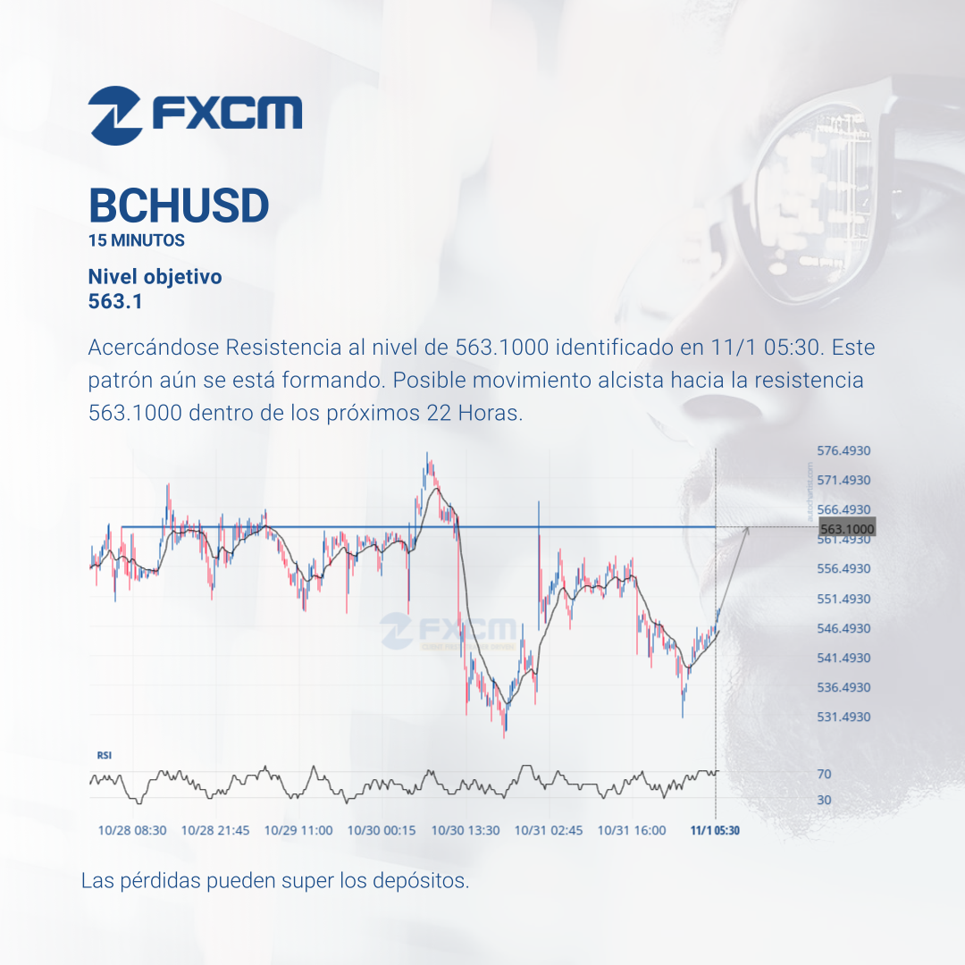 Acercándose Resistencia al nivel de 563.1000 identificado en 11/1 05:30. Este patrón aún se está formando. Posible movimiento alcista hacia la resistencia 563.1000 dentro de los próximos 22 Horas.