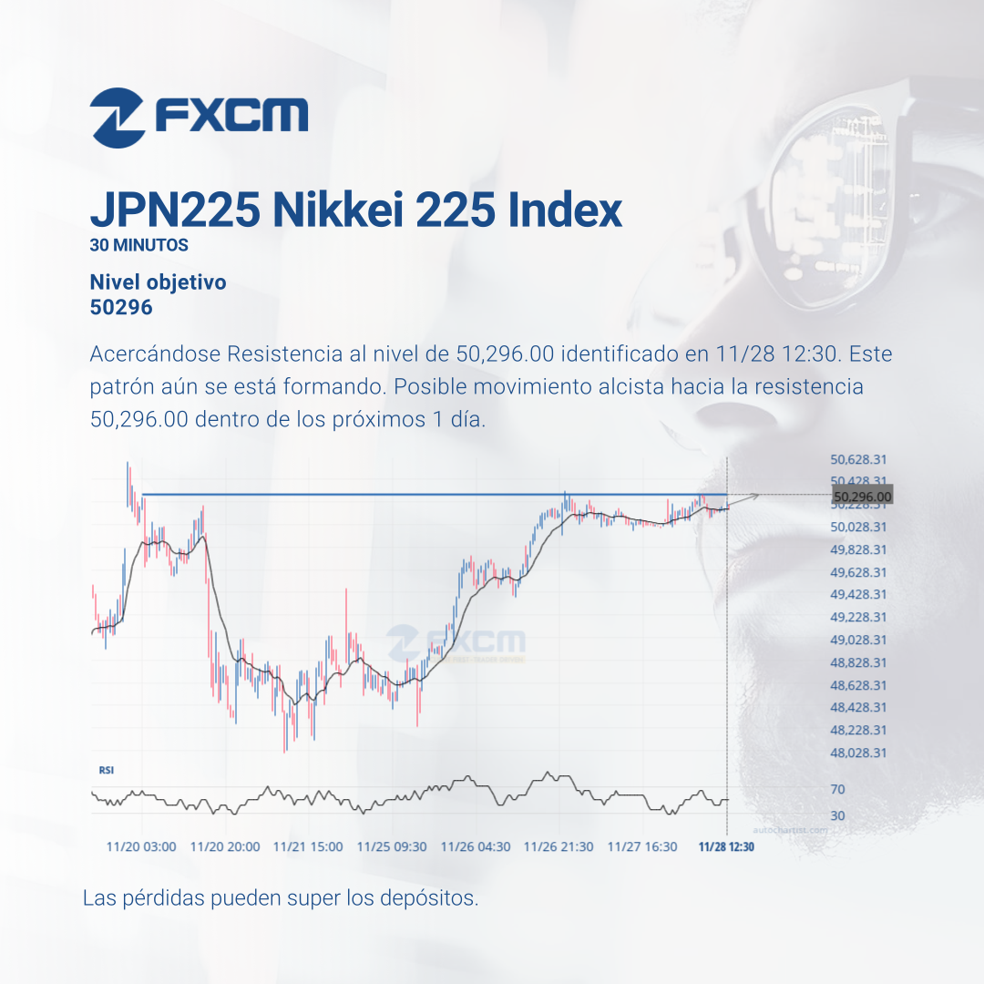 Acercándose Resistencia al nivel de 50,296.00 identificado en 11/28 12:30. Este patrón aún se está formando. Posible movimiento alcista hacia la resistencia 50,296.00 dentro de los próximos 1 día.