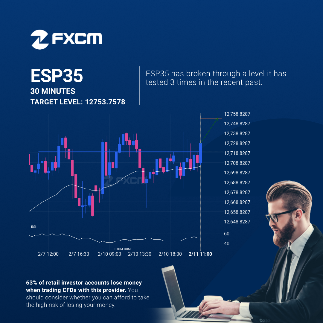 The breakout of ESP35 through the 12719.7197 price line is a breach of an important psychological price that is has tested numerous in the past. If this breakout persists, ESP35 could test 12753.7578 within the next 6 hours. One should always be cautious before placing a trade, wait for confirmation of the breakout.