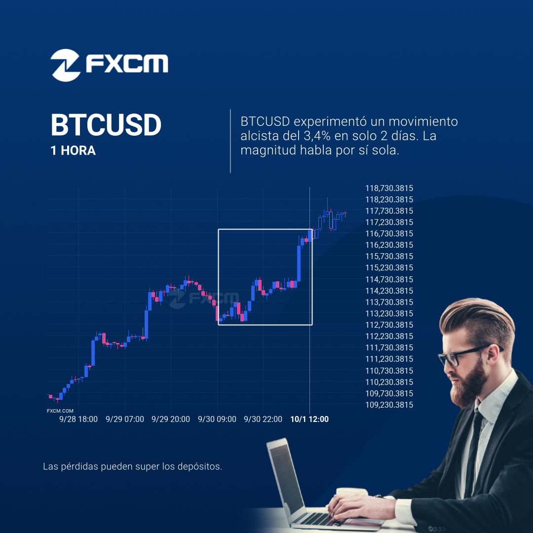 BTCUSD alcanzó los 116813.1 tras un movimiento del 3,4% en un período de 2 días.