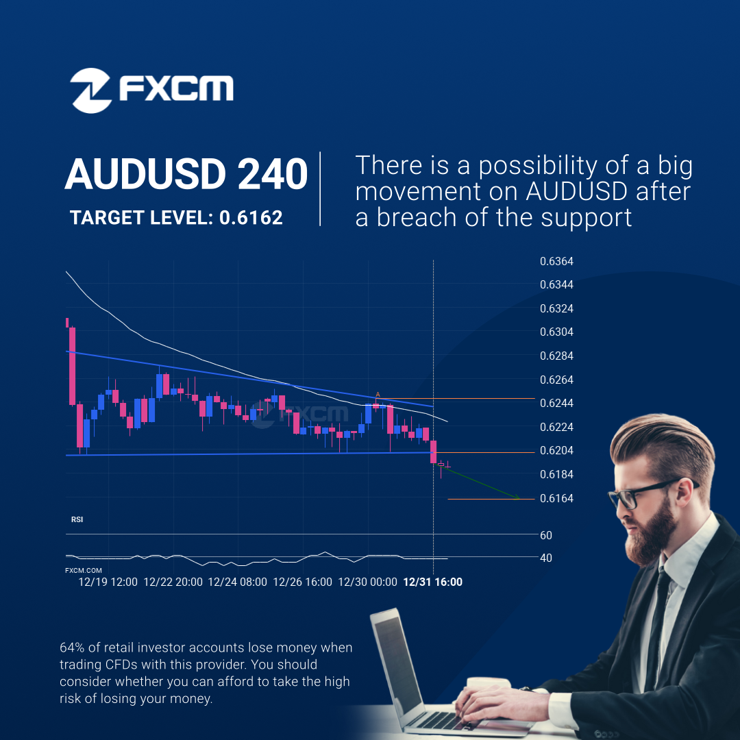 AUDUSD has broken through a support line. It has touched this line at least twice in the last 15 days. This breakout may indicate a potential move to 0.6162 within the next 3 days. Because we have seen it retrace from this position in the past, one should wait for confirmation of the breakout before trading.
