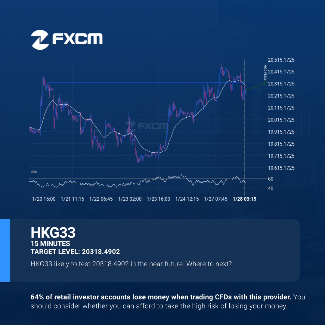 HKG33 is moving towards a key resistance level at 20318.4902. HKG33 has previously tested this level 3 times and on each occasion it has bounced back off this level. Is this finally the time it will break through?