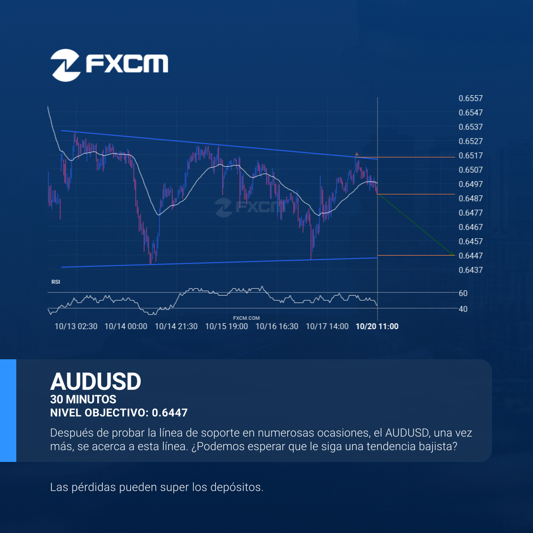 El AUDUSD se está acercando a la línea de soporte de un Triángulo descendiente. Ha llegado a esta línea en numerosas ocasiones durante los últimos 8 días. Si vuelve a probarla de nuevo, debería hacerlo en las próximas 2 días.