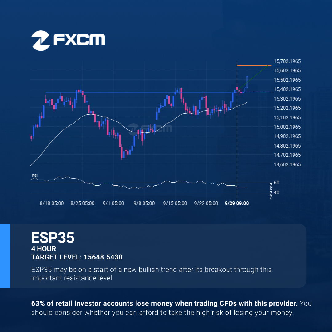 The breakout of ESP35 through the 15365.6602 price line is a breach of an important psychological price that is has tested numerous in the past. If this breakout persists, ESP35 could test 15648.5430 within the next 3 days. One should always be cautious before placing a trade, wait for confirmation of the breakout.