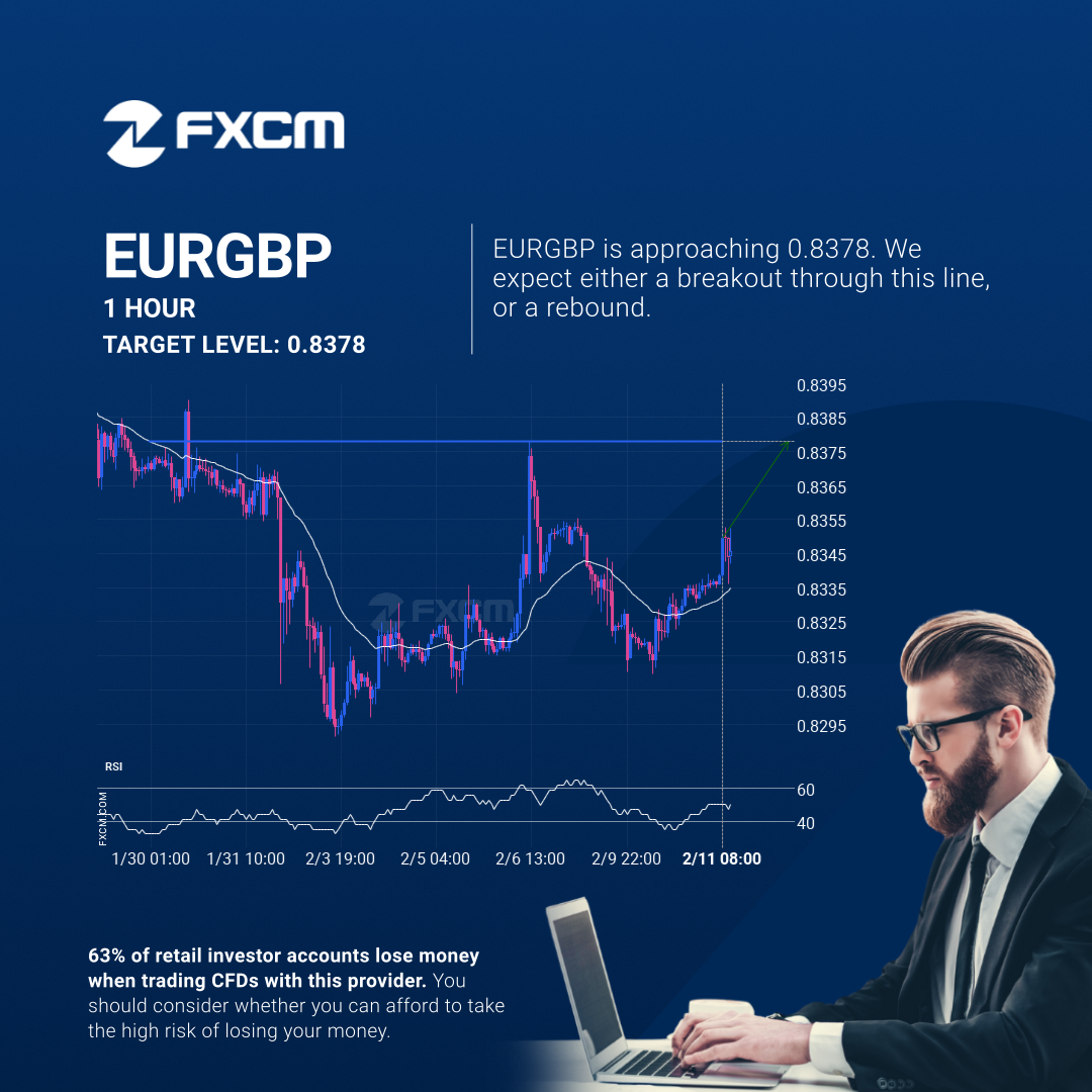 EURGBP is moving towards a line of 0.8378 which it has tested numerous times in the past. We have seen it retrace from this position in the past, so at this stage it isn’t clear whether it will breach this price or rebound as it did before. If EURGBP continues in its current trajectory, we may see it move towards 0.8378 within the next 2 days.