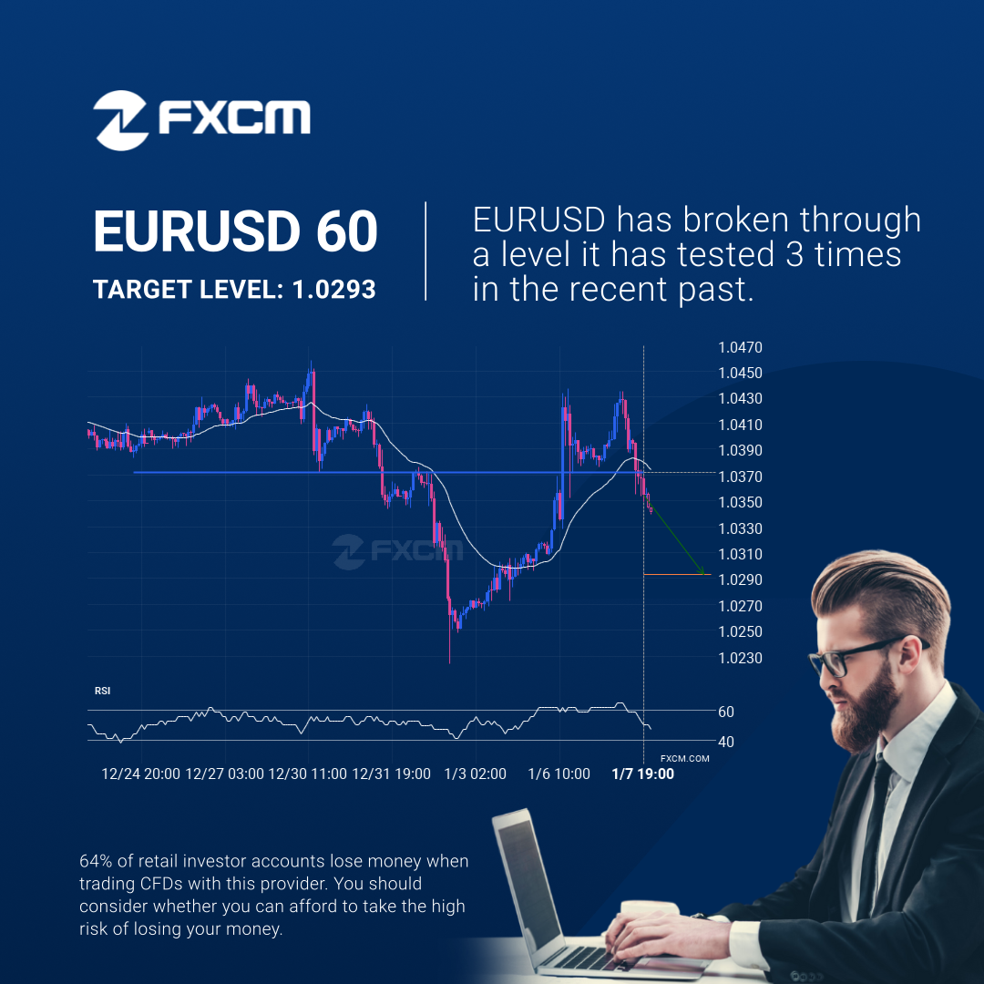 EURUSD has broken through 1.0372 which it has tested numerous times in the past. We have seen it retrace from this price in the past. If this new trend persists, EURUSD may be heading towards 1.0293 within the next 2 days.