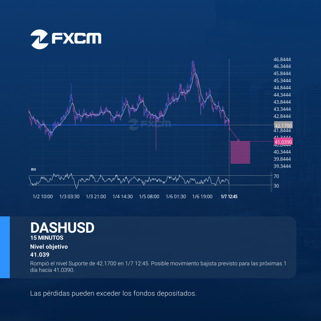 Rompió el nivel Suporte de 42.1700 en 1/7 12:45. Posible movimiento bajista previsto para las próximas 1 día hacia 41.0390.