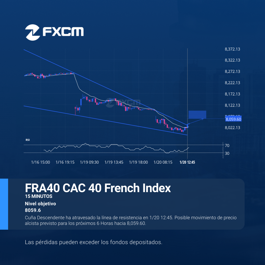 Cuña Descendente ha atravesado la línea de resistencia en 1/20 12:45. Posible movimiento de precio alcista previsto para los próximos 6 Horas hacia 8,059.60.