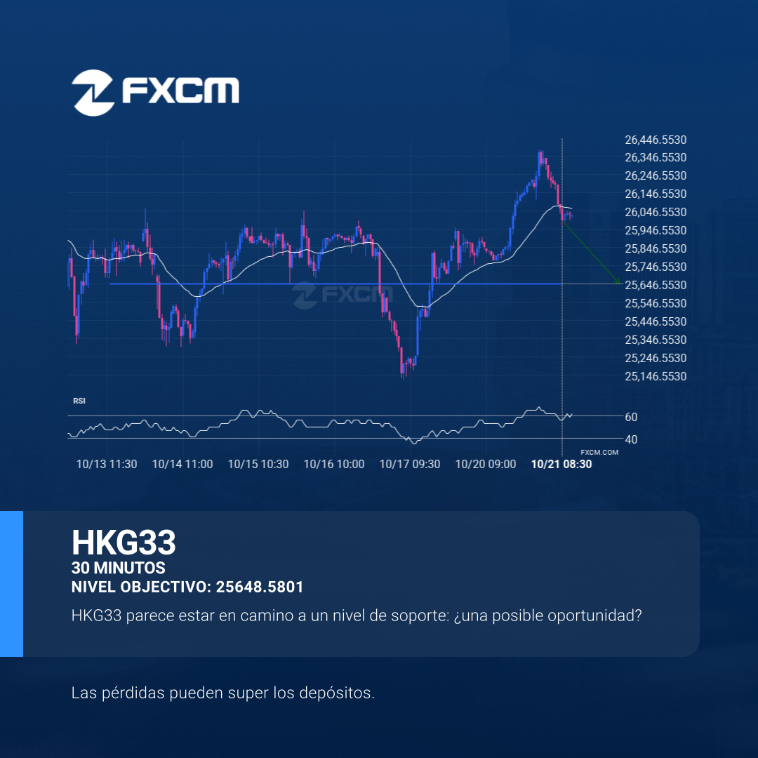 HKG33 está a punto de volver a testear un nivel de soporte horizontal clave, cerca de 25648.5801. Ha testeado este nivel 3 veces recientemente y podría simplemente rebotar como lo hizo la última vez. Sin embargo, después de tantos intentos, tal vez esté listo para empezar una nueva tendencia.