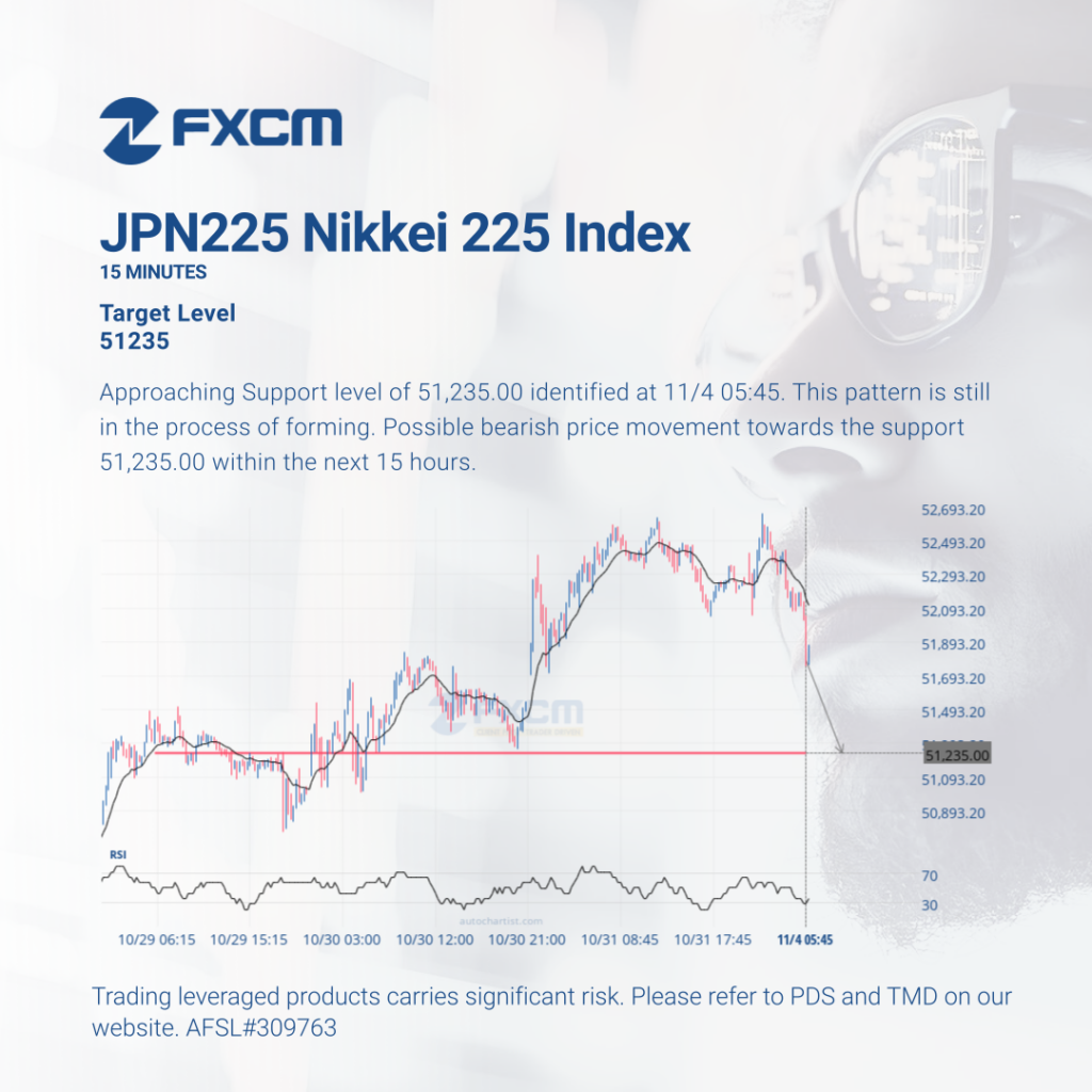 Approaching Support level of 51,235.00 identified at 11/4 05:45. This pattern is still in the process of forming. Possible bearish price movement towards the support 51,235.00 within the next 15 hours. Past performance is not an indicator of future results. Trading leveraged products carries significant risk. Please refer to PDS and TMD on our website. […]