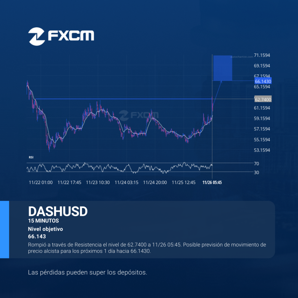 Rompió a través de Resistencia el nivel de 62.7400 a 11/26 05:45. Posible previsión de movimiento de precio alcista para los próximos 1 día hacia 66.1430. El rendimiento pasado no es indicativo de resultados futuros. Las pérdidas pueden exceder los fondos depositados.