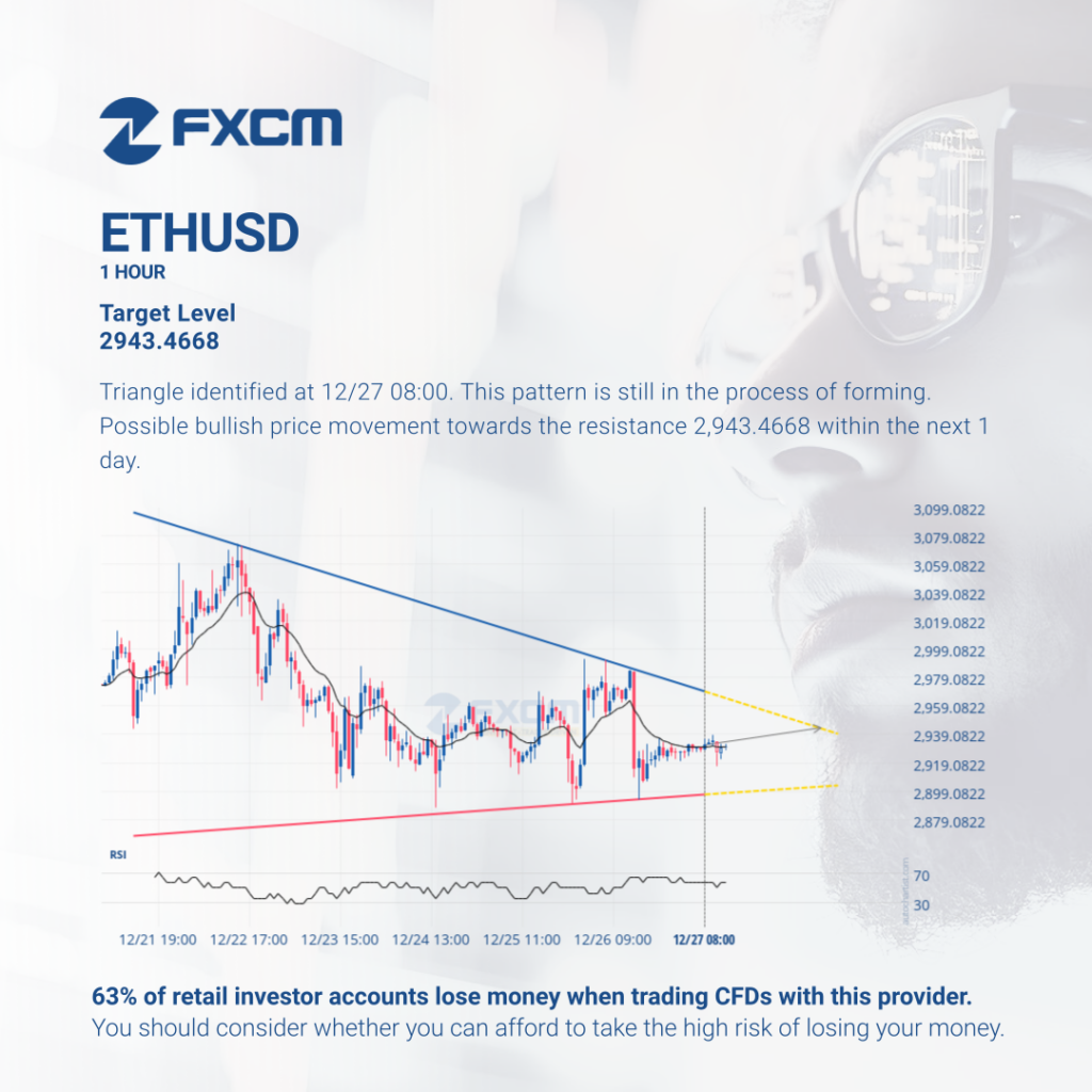 Triangle identified at 12/27 08:00. This pattern is still in the process of forming. Possible bullish price movement towards the resistance 2,943.4668 within the next 1 day. Past performance is not an indicator of future results. Losses can exceed deposits.
