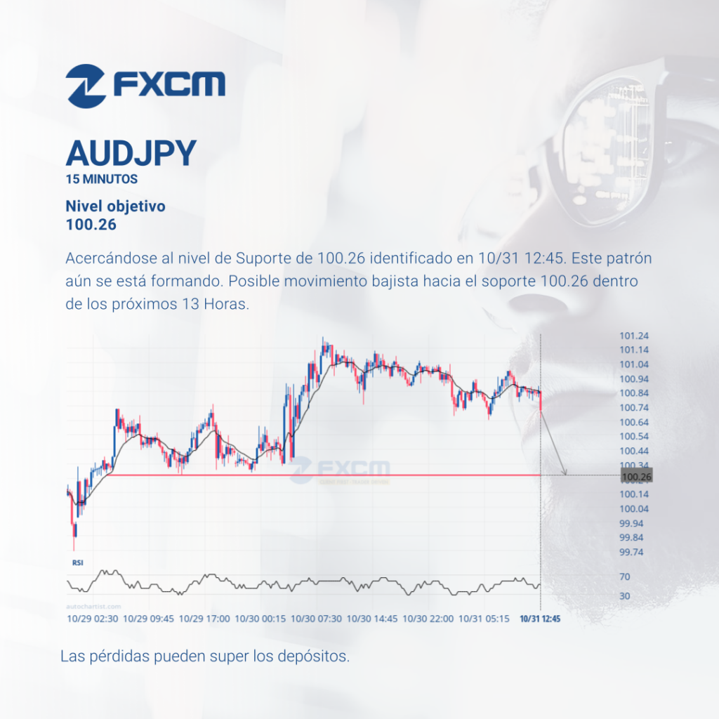 Acercándose al nivel de Suporte de 100.26 identificado en 10/31 12:45. Este patrón aún se está formando. Posible movimiento bajista hacia el soporte 100.26 dentro de los próximos 13 Horas. El rendimiento pasado no es indicativo de resultados futuros. Las pérdidas pueden exceder los fondos depositados.