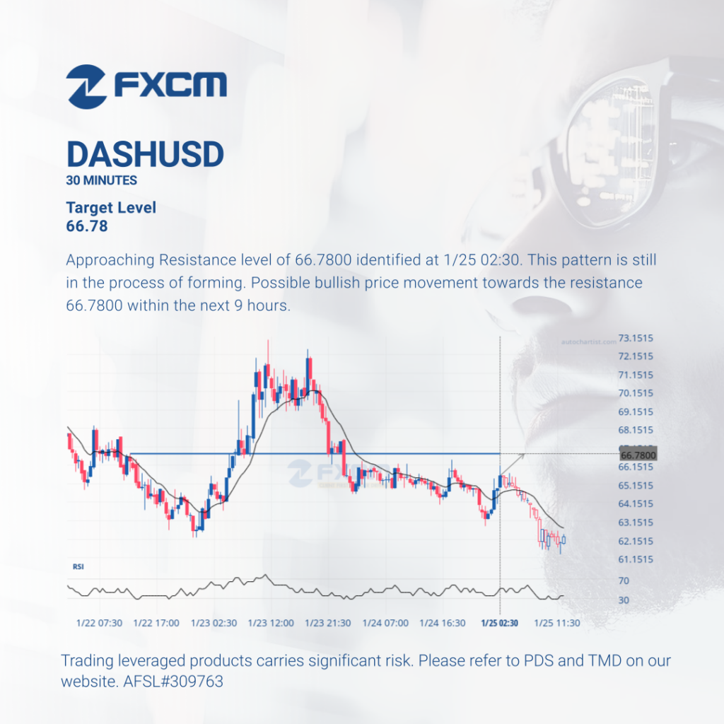 Approaching Resistance level of 66.7800 identified at 1/25 02:30. This pattern is still in the process of forming. Possible bullish price movement towards the resistance 66.7800 within the next 9 hours. Past performance is not an indicator of future results. Trading leveraged products carries significant risk. Please refer to PDS and TMD on our website. […]