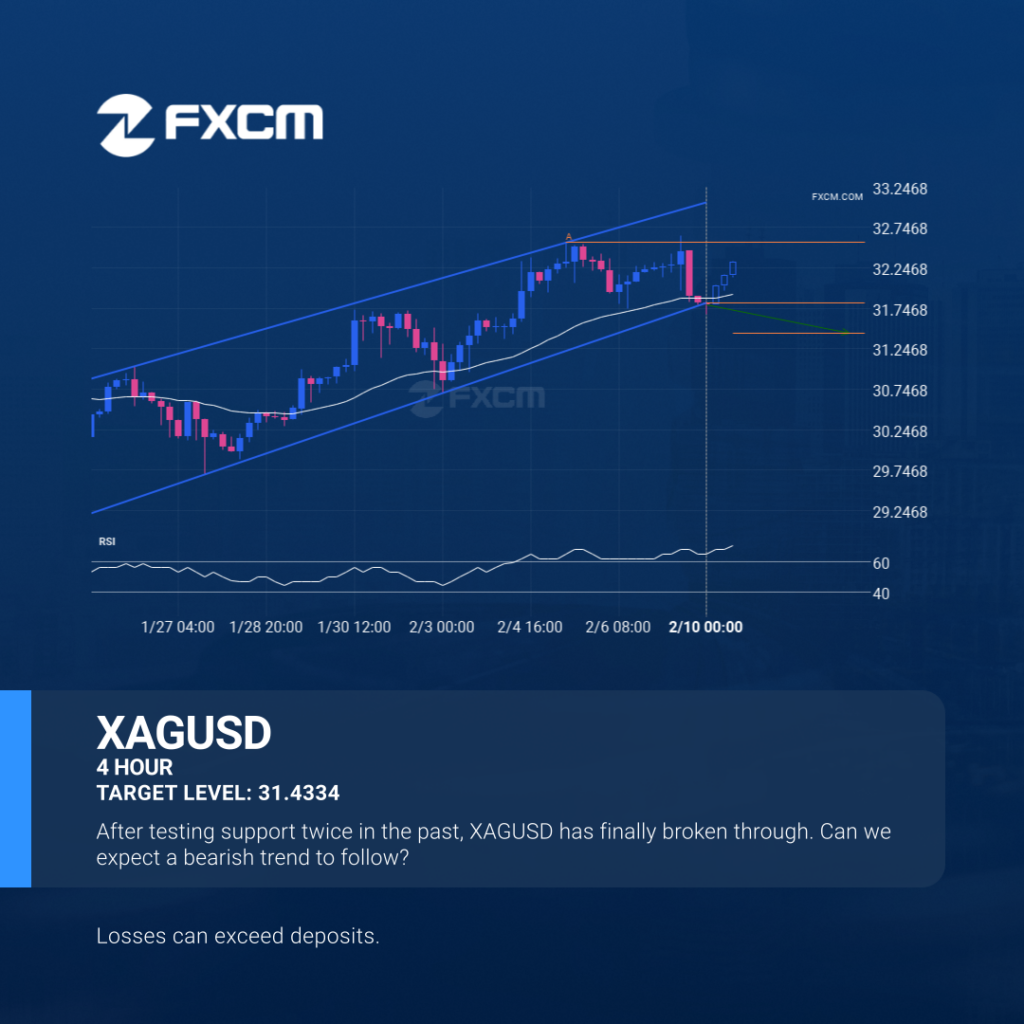 XAGUSD has broken through a support line of a Channel Up and suggests a possible movement to 31.4334 within the next 4 days. It has tested this line in the past, so one should probably wait for a confirmation of this breakout before taking action. If the breakout doesn’t confirm, we could see a retracement […]