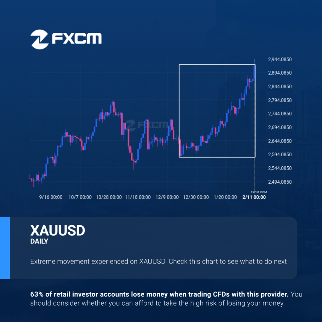 XAUUSD has moved higher by 12.74% from 2588.17 to 2917.92 in the last 56 days. Past performance is not an indicator of future results. 64% of retail investor accounts lose money when trading CFDs with this provider. You should consider whether you can afford to take the high risk of losing your money.