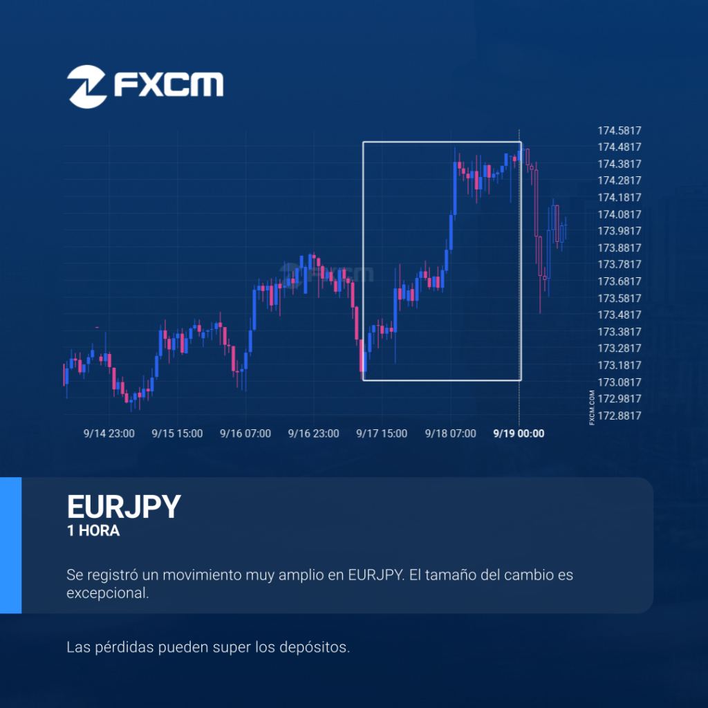 EURJPY acaba de registrar un movimiento del 0,69% en los últimos 2 días: un movimiento que no pasa desapercibido para ningún tipo de estrategia. El rendimiento pasado no es indicativo de resultados futuros. Las pérdidas pueden exceder los fondos depositados.