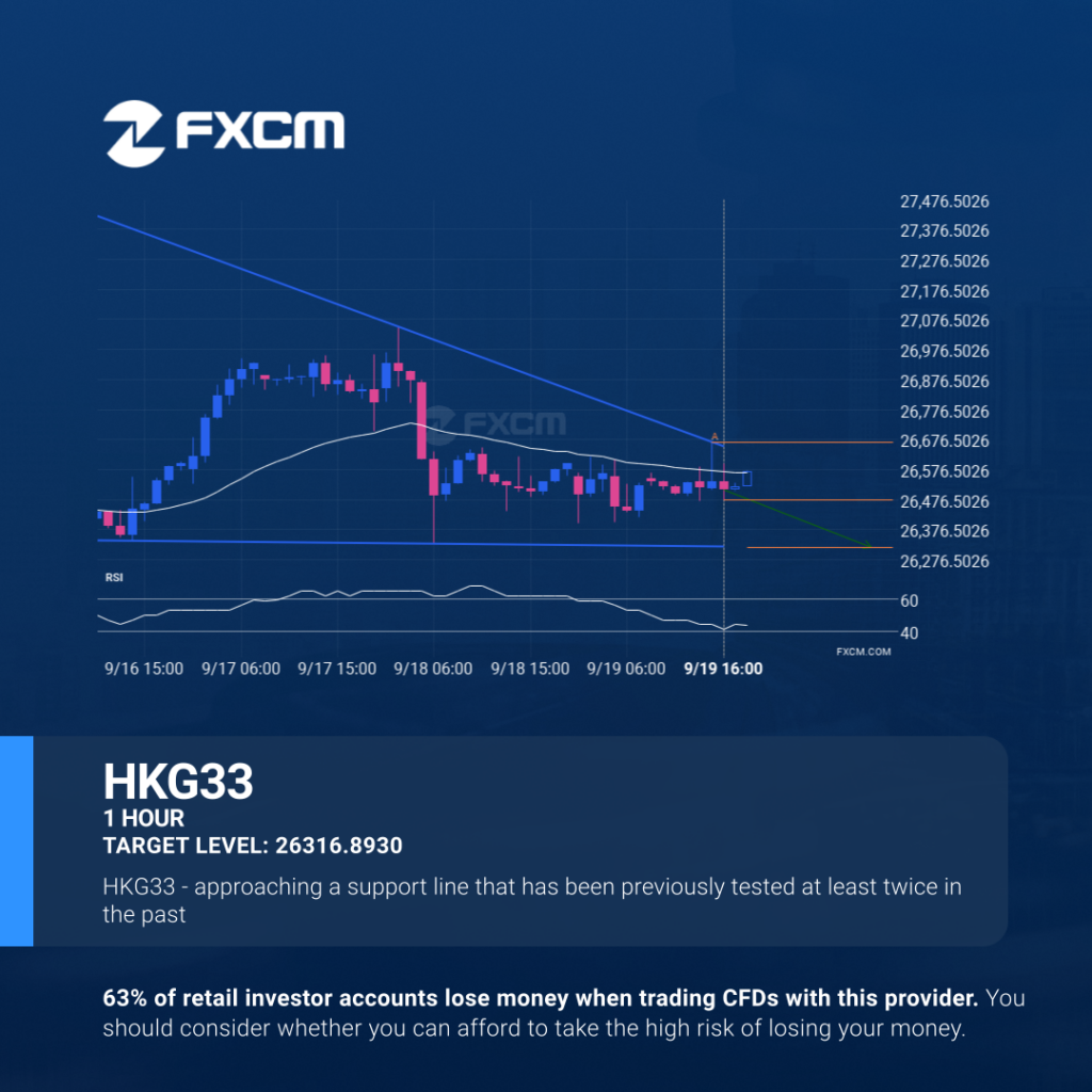 HKG33 is heading towards the support line of a Descending Triangle and could reach this point within the next 13 hours. It has tested this line numerous times in the past, and this time could be no different from the past, ending in a rebound instead of a breakout. If the breakout doesn’t happen, we […]