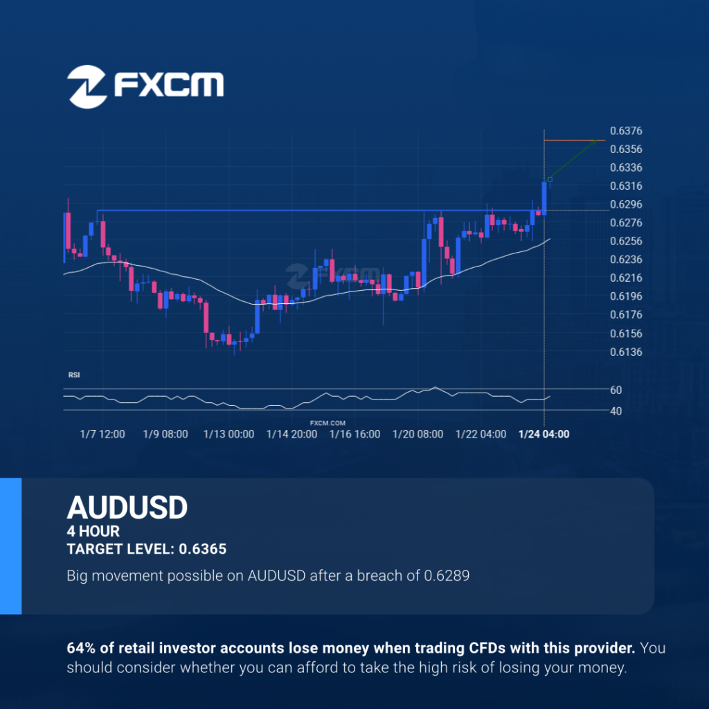 AUDUSD has breached the resistance line at 0.6289. It may continue the bullish trend towards 0.6365, or, it may prove to be yet another test of this level. Past performance is not an indicator of future results. Trading leveraged products carries significant risk. Please refer to PDS and TMD on our website. AFSL#309763