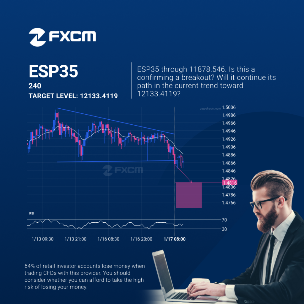 ESP35 has broken through a resistance line. It has touched this line at least twice in the last 50 days. This breakout may indicate a potential move to 12133.4119 within the next 3 days. Because we have seen it retrace from this position in the past, one should wait for confirmation of the breakout before […]