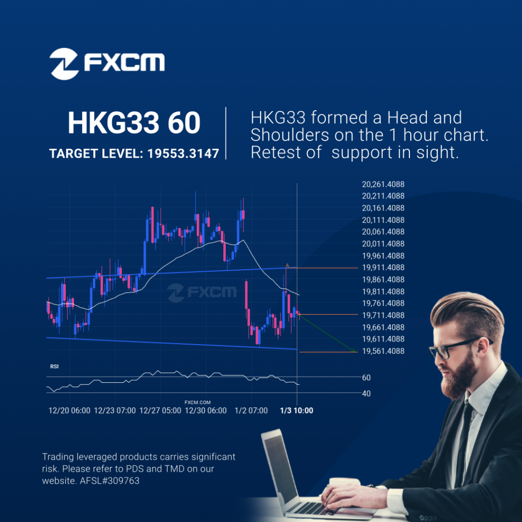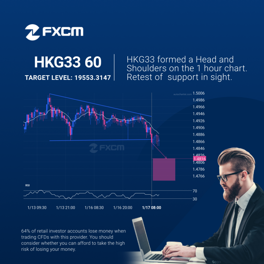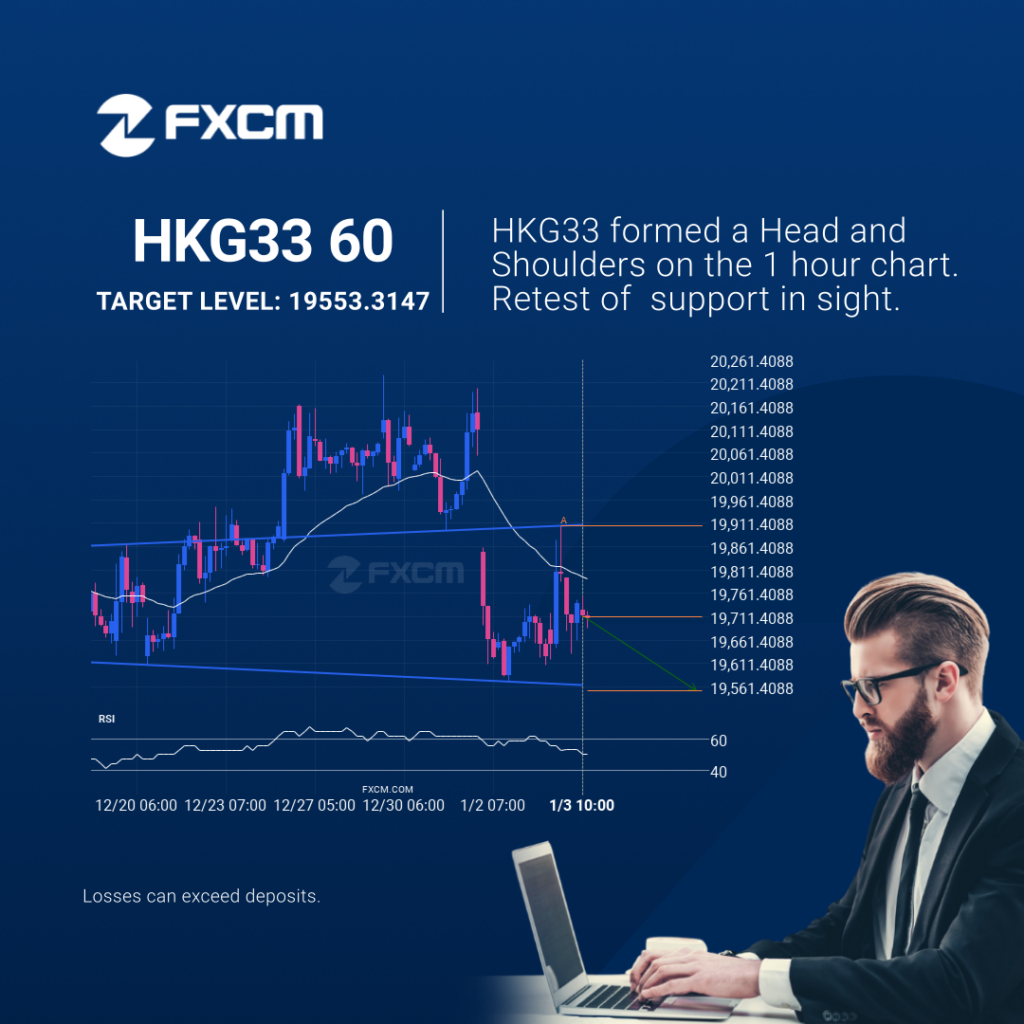 Emerging Head and Shoulders pattern in its final wave was identified on the HKG33 1 hour chart. After a strong bearish run, we find HKG33 heading towards the upper triangle line with a possible resistance at 19553.3147. If the support shows to hold, the Head and Shoulders pattern suggests a rebound back towards current levels. […]