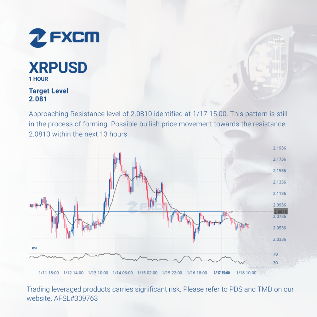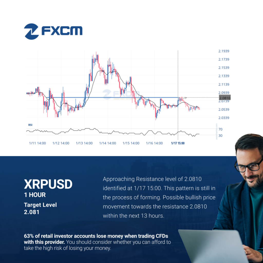Approaching Resistance level of 2.0810 identified at 1/17 15:00. This pattern is still in the process of forming. Possible bullish price movement towards the resistance 2.0810 within the next 13 hours. Past performance is not an indicator of future results. Trading leveraged products carries significant risk. Please refer to PDS and TMD on our website. […]