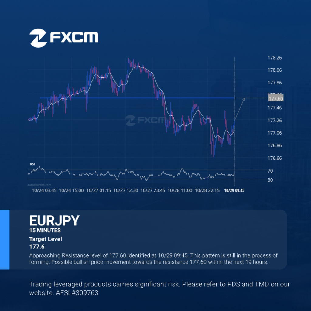 Approaching Resistance level of 177.60 identified at 10/29 09:45. This pattern is still in the process of forming. Possible bullish price movement towards the resistance 177.60 within the next 19 hours. Past performance is not an indicator of future results. Trading leveraged products carries significant risk. Please refer to PDS and TMD on our website. […]