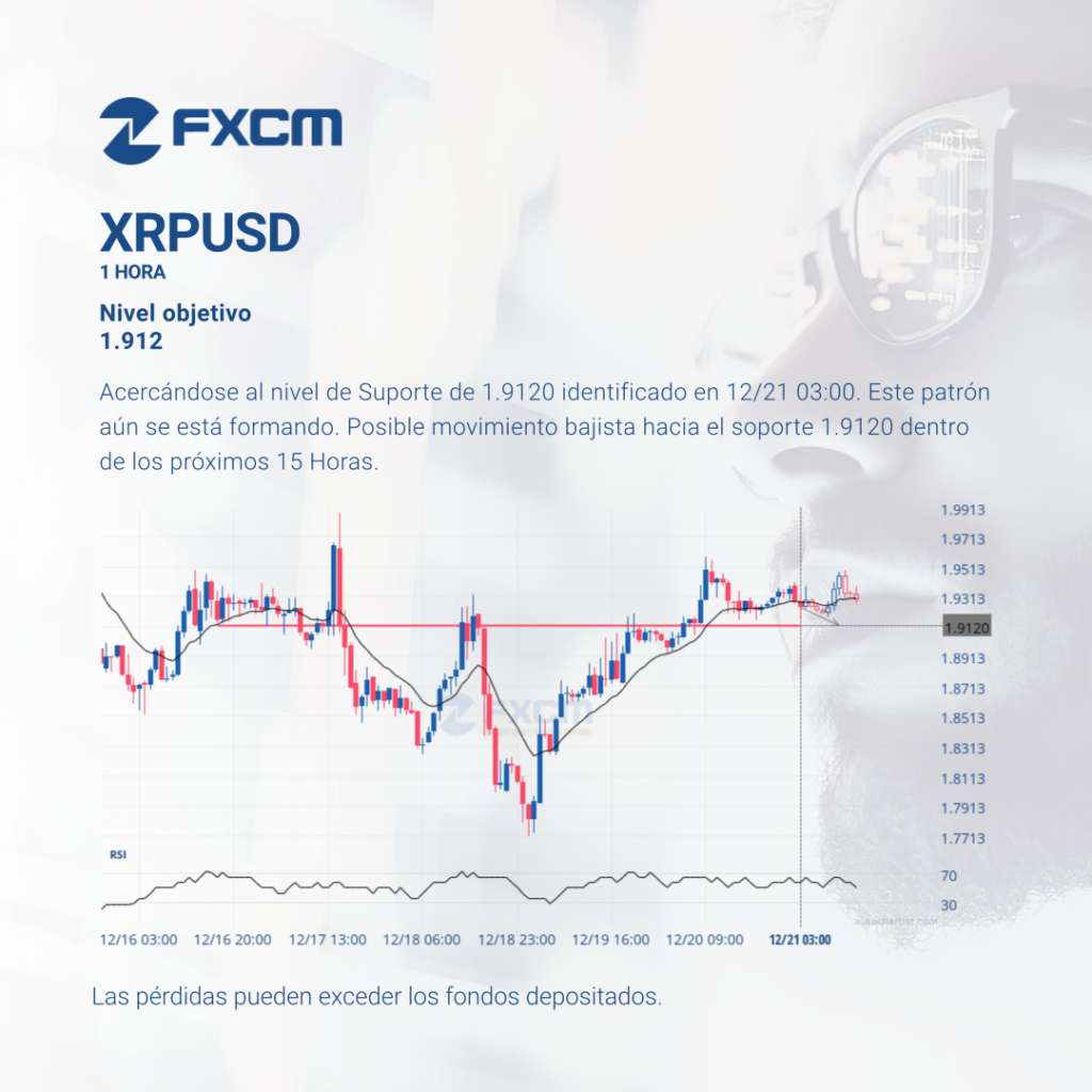 Acercándose al nivel de Suporte de 1.9120 identificado en 12/21 03:00. Este patrón aún se está formando. Posible movimiento bajista hacia el soporte 1.9120 dentro de los próximos 15 Horas. El rendimiento pasado no es indicativo de resultados futuros. Las pérdidas pueden exceder los depósitos.
