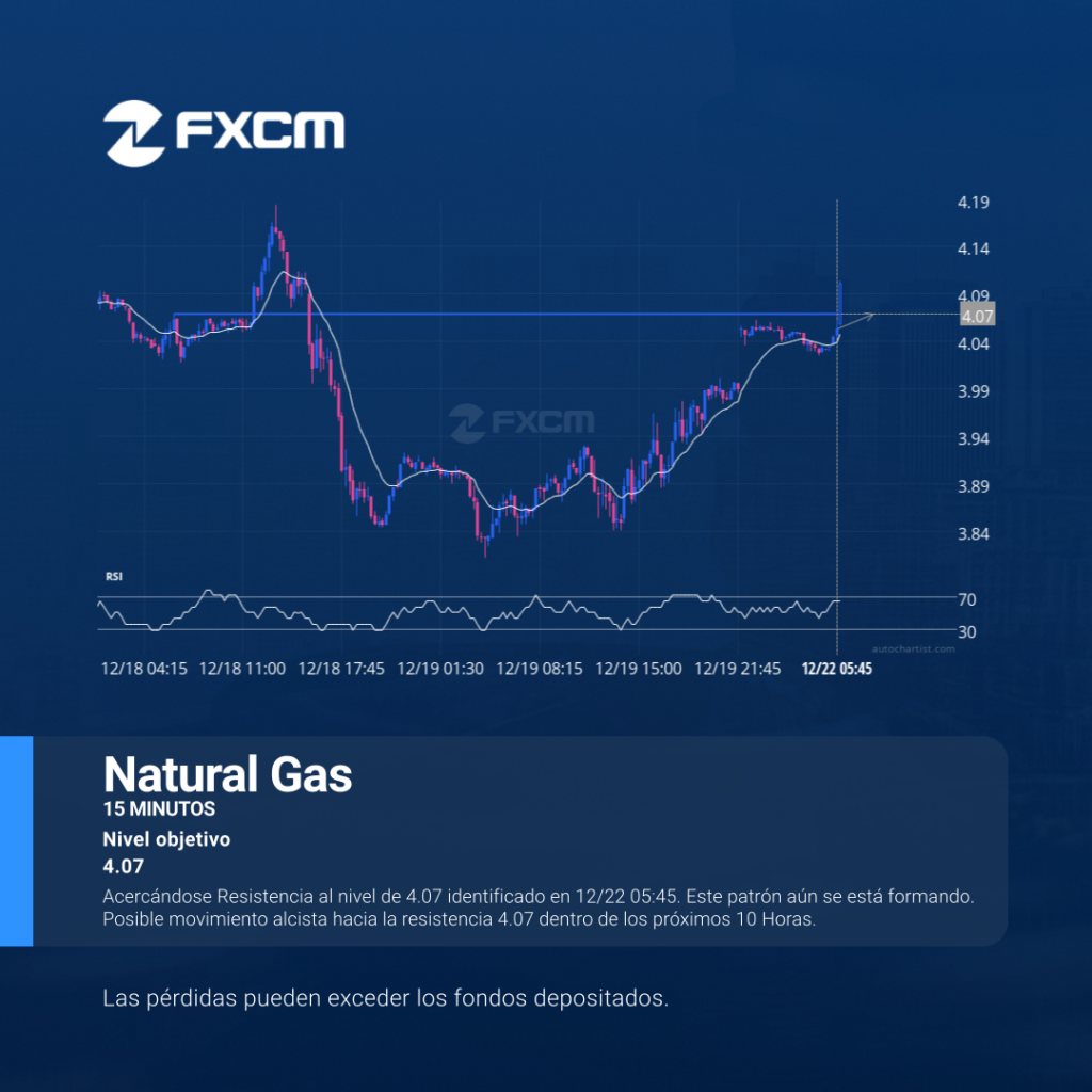 Acercándose Resistencia al nivel de 4.07 identificado en 12/22 05:45. Este patrón aún se está formando. Posible movimiento alcista hacia la resistencia 4.07 dentro de los próximos 10 Horas. El rendimiento pasado no es indicativo de resultados futuros. Las pérdidas pueden exceder los depósitos.