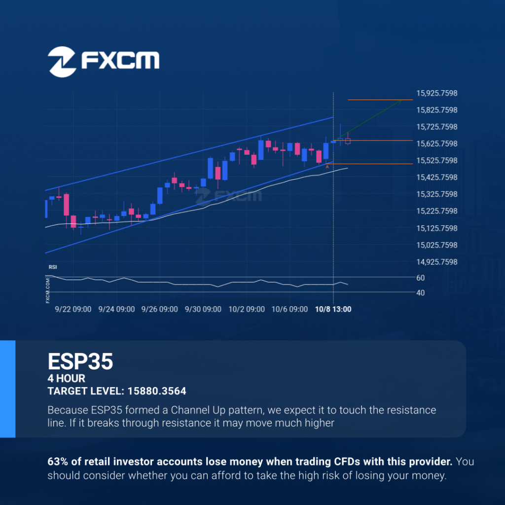 A Channel Up pattern was identified on ESP35 at 15640.2, creating an expectation that it may move to the resistance line at 15880.3564. It may break through that line and continue the bullish trend or it may reverse from that line. Past performance is not an indicator of future results. Trading leveraged products carries significant […]