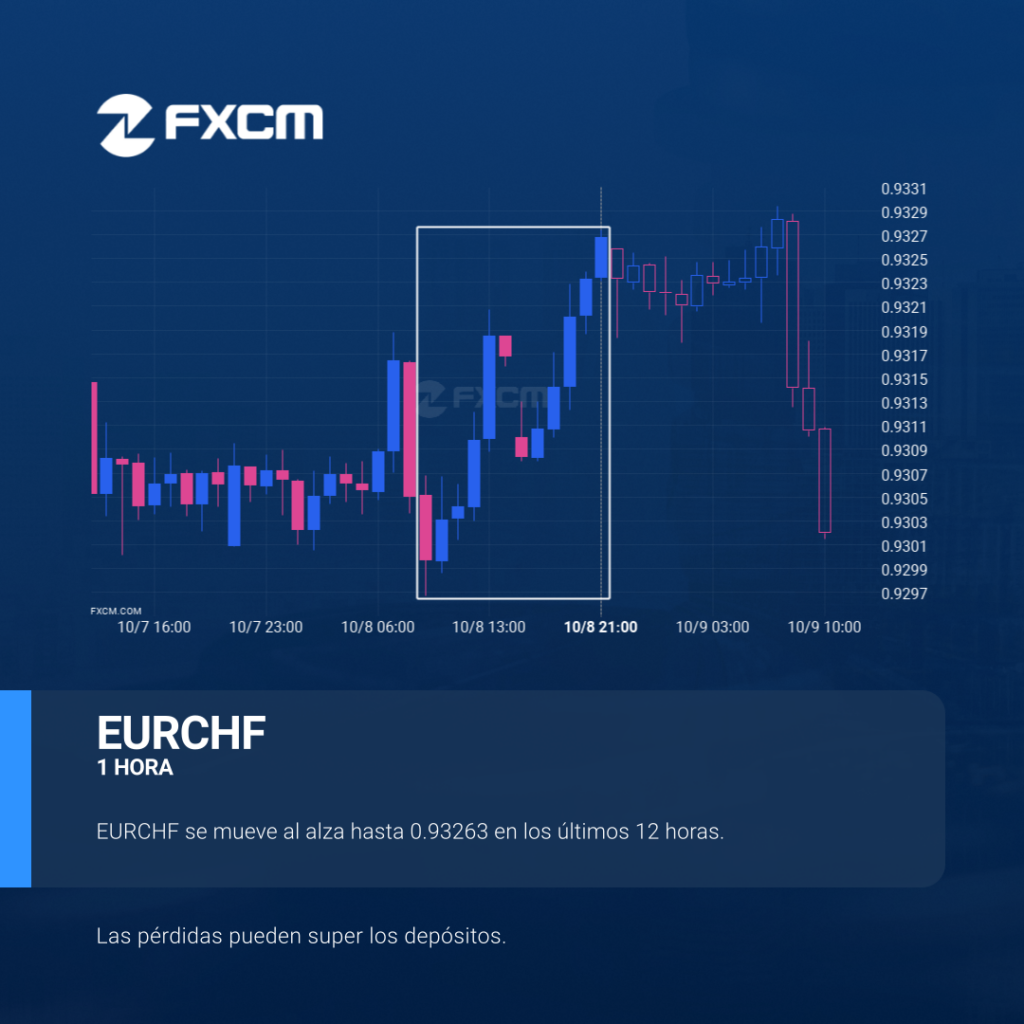 EURCHF has moved higher by 0.29% from 0.92992 to 0.93263 in the last 12 hours. Past performance is not an indicator of future results. Losses can exceed deposits.