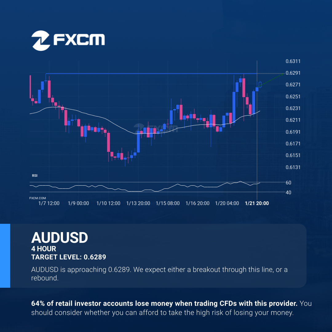AUDUSD is moving towards a key resistance level at 0.6289. AUDUSD has previously tested this level 3 times and on each occasion it has bounced back off this level. Is this finally the time it will break through?