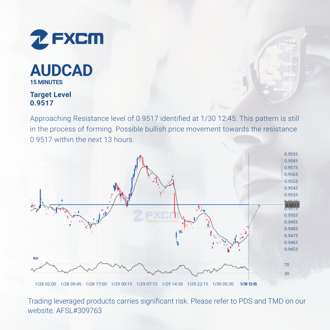 Approaching Resistance level of 0.9517 identified at 1/30 12:45. This pattern is still in the process of forming. Possible bullish price movement towards the resistance 0.9517 within the next 13 hours.