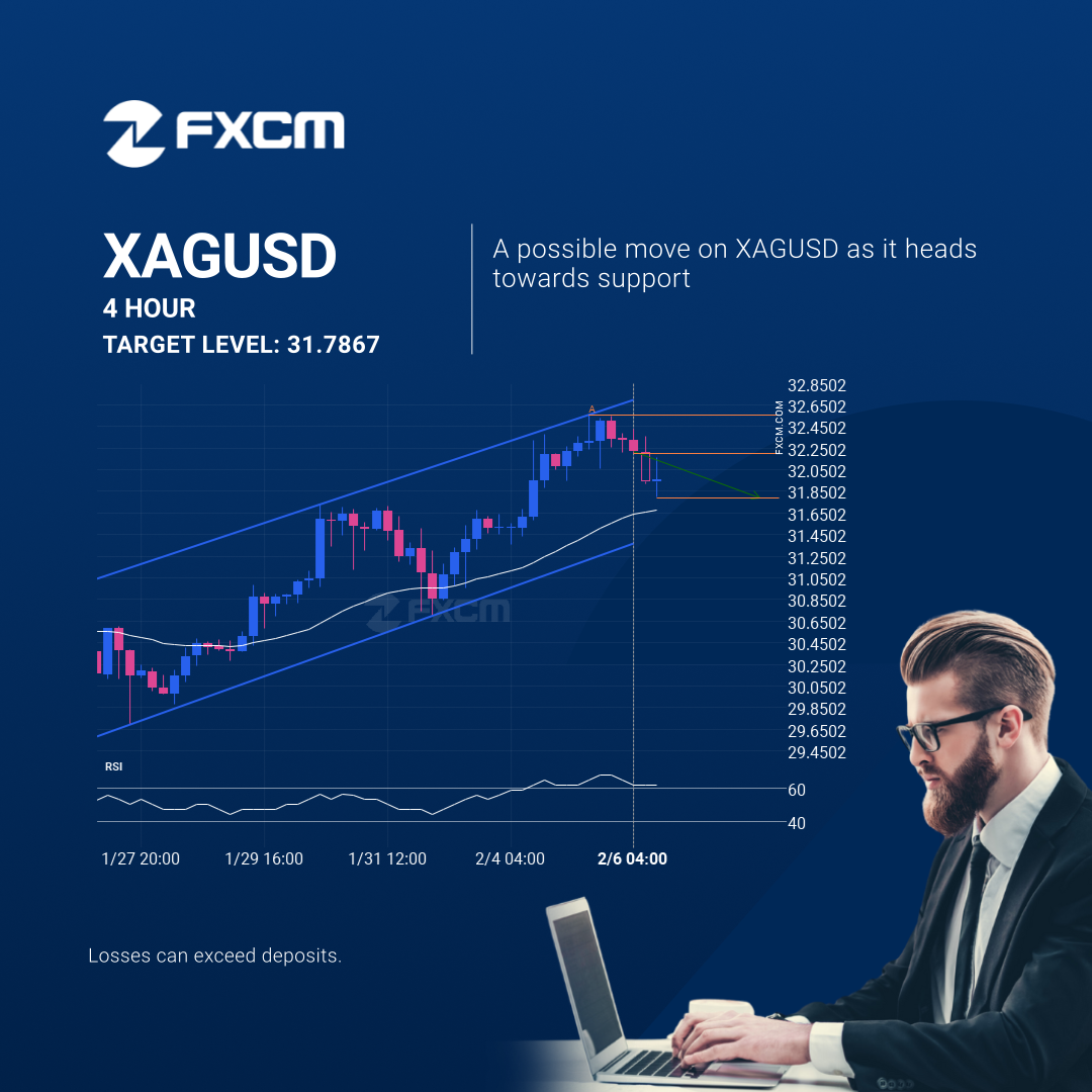 A Channel Up pattern was identified on XAGUSD at 32.203, creating an expectation that it may move to the support line at 31.7867. It may break through that line and continue the bearish trend or it may reverse from that line.